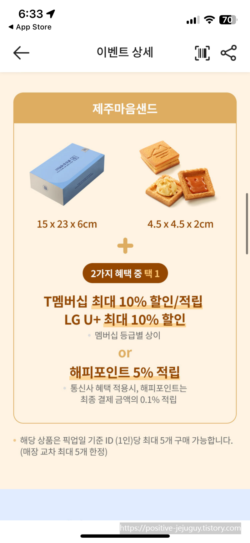 제주마음샌드는 파리바게뜨에서 판매를 하기 때문에 파리바게뜨의 할인 혜택을 받을 수 있다.