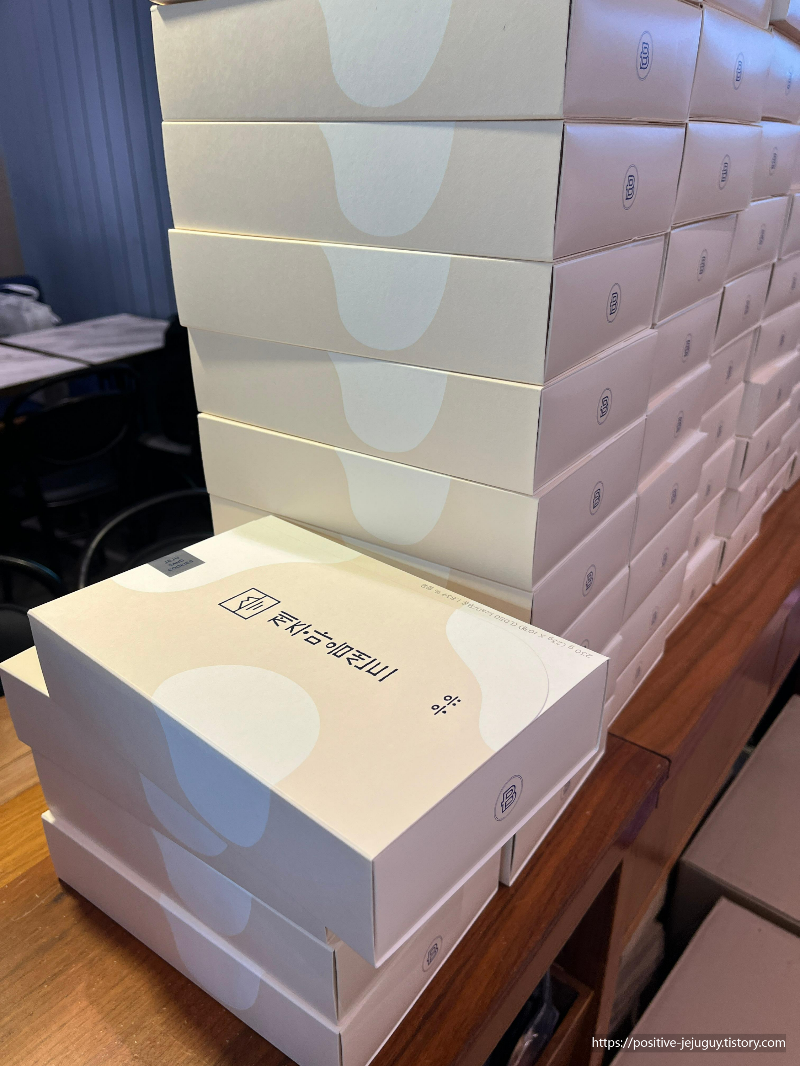 따로 예약을 하지 않고 방문을 했는데 매장 안에 제주마음샌드 박스가 가득 쌓여 있었고, 구매할 때 큰 어려움은 없었다.
